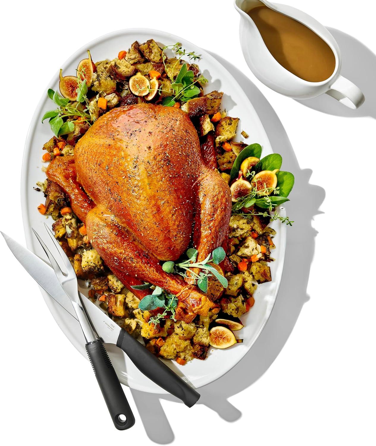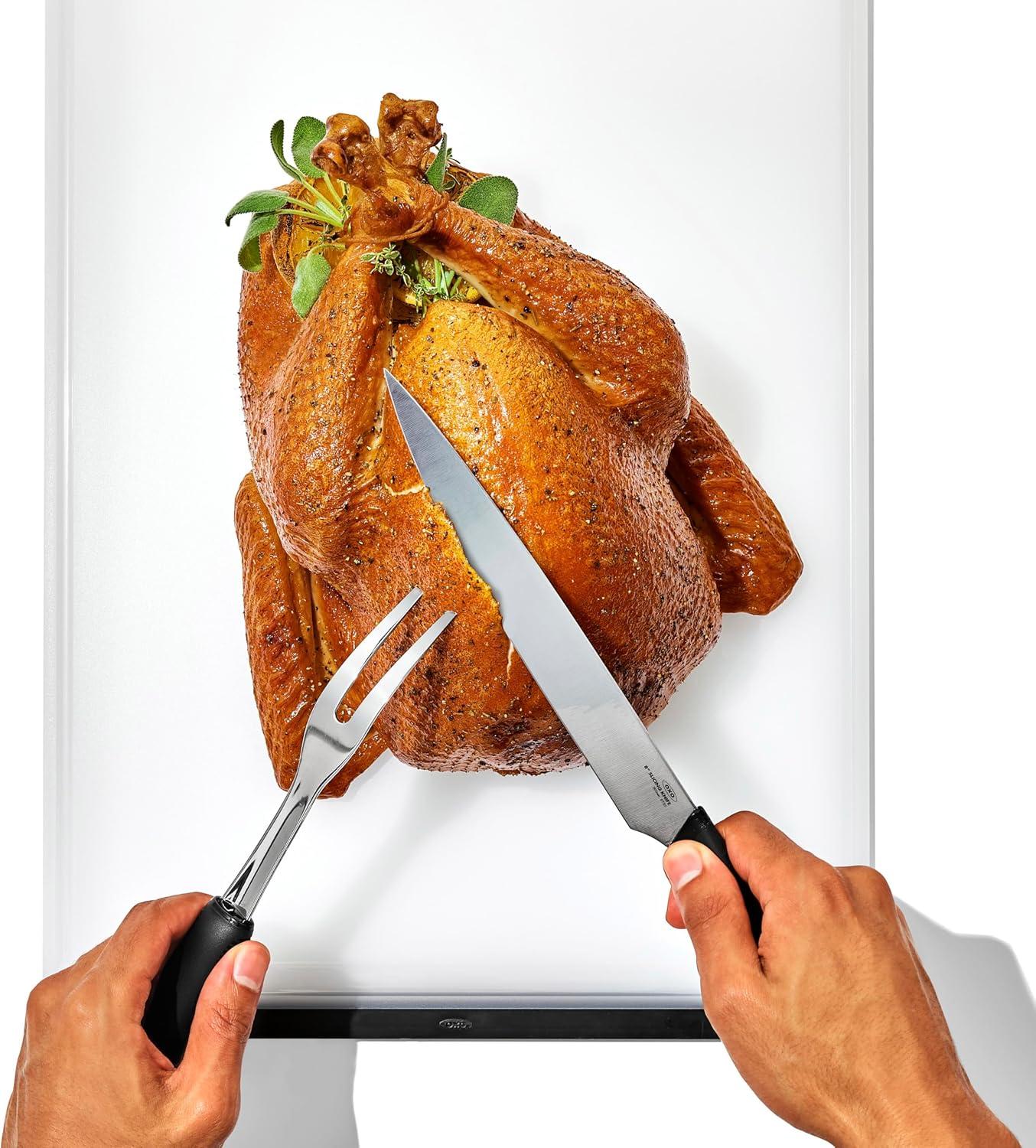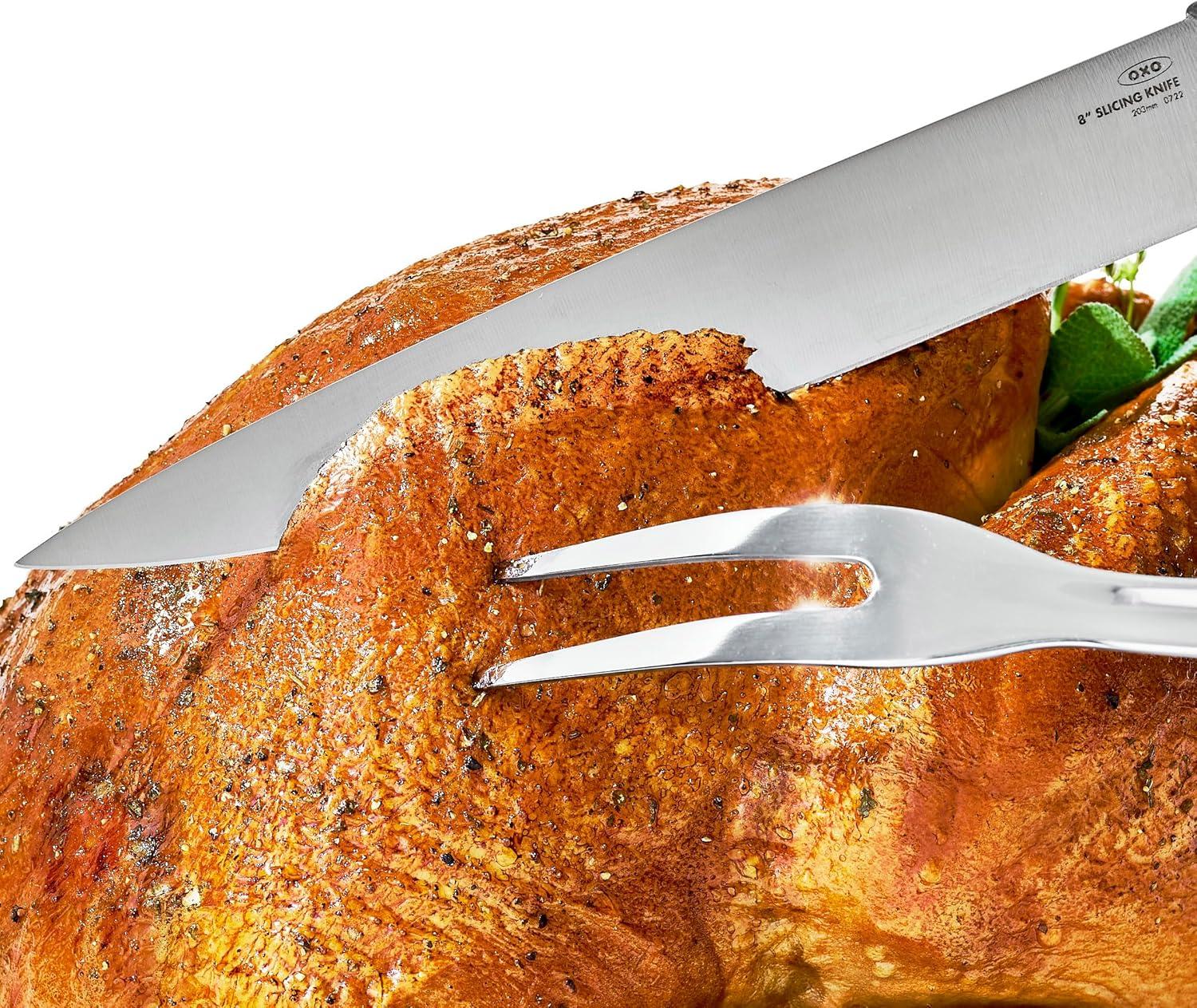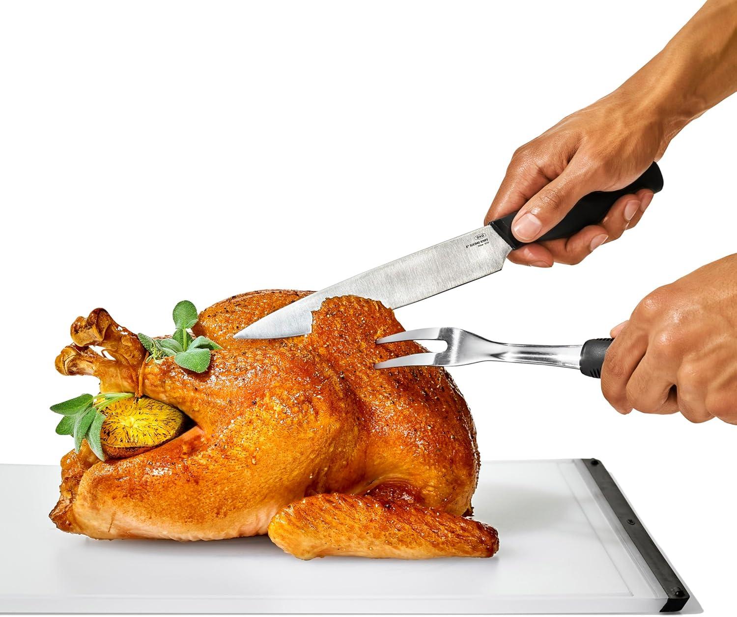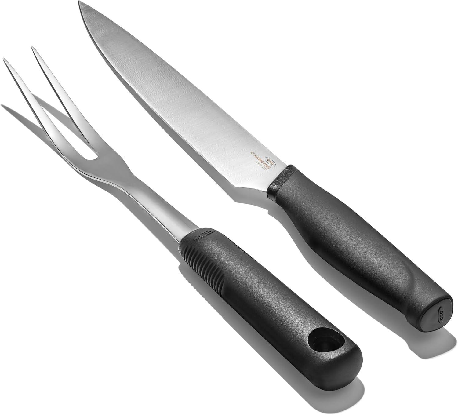 OXO Carving Set |Soft-Grip Duo Designed for Effortless Carving and Serving |2-Piece Fork & Knife Set | Spear, Secure, Cut & Serve Roasted Meat(Carving Set)