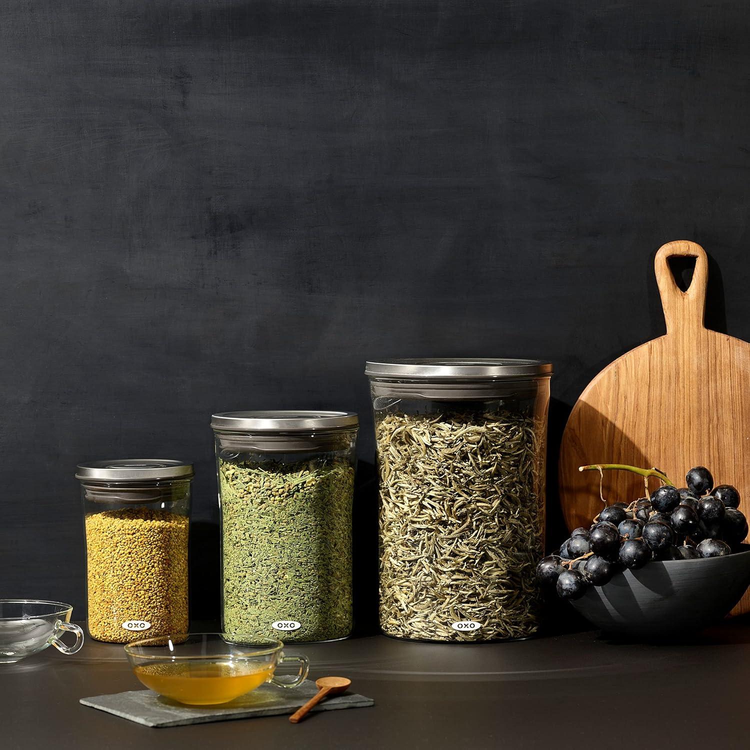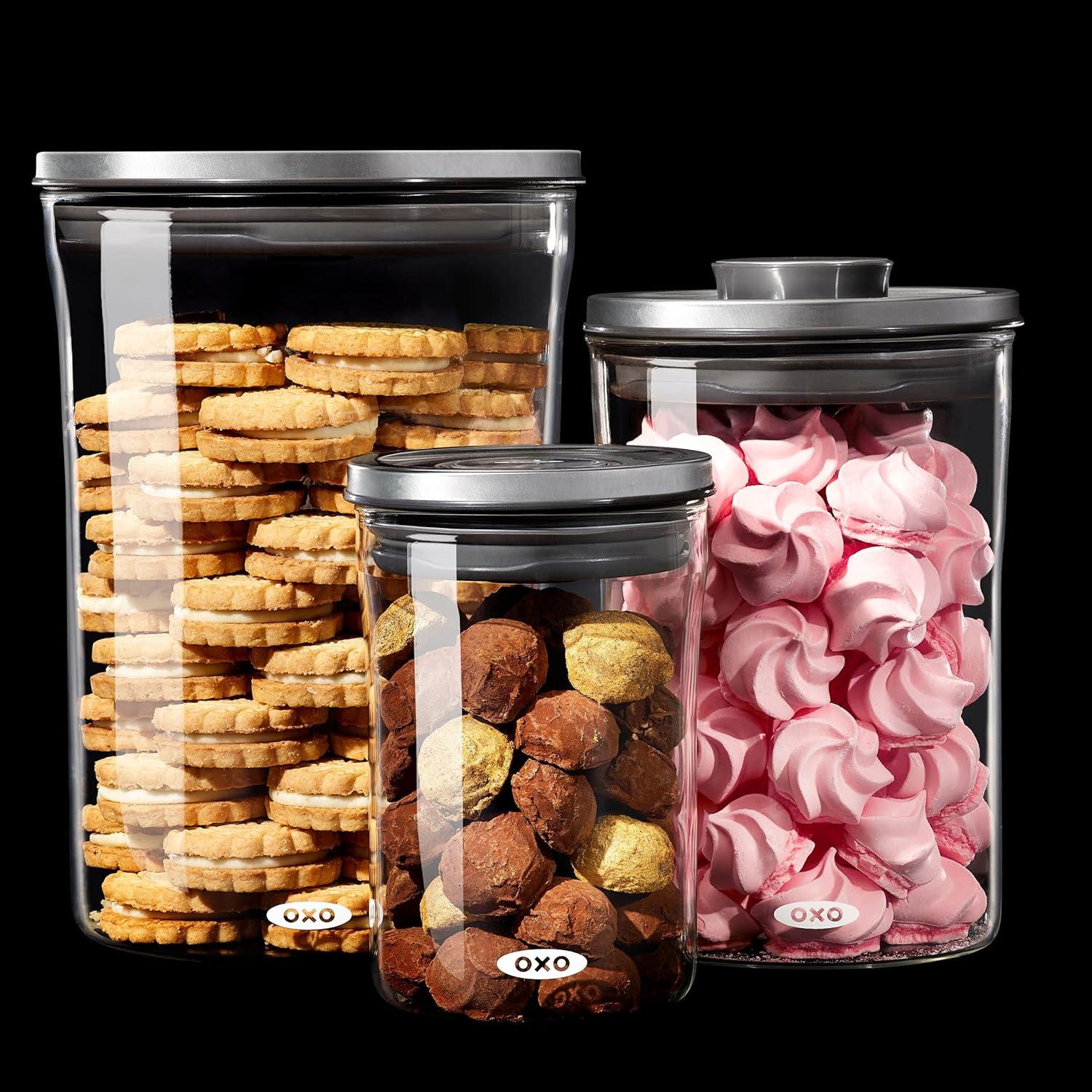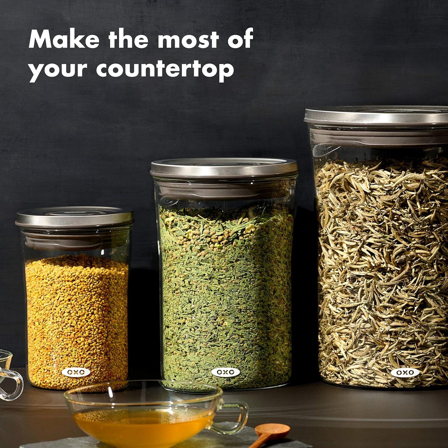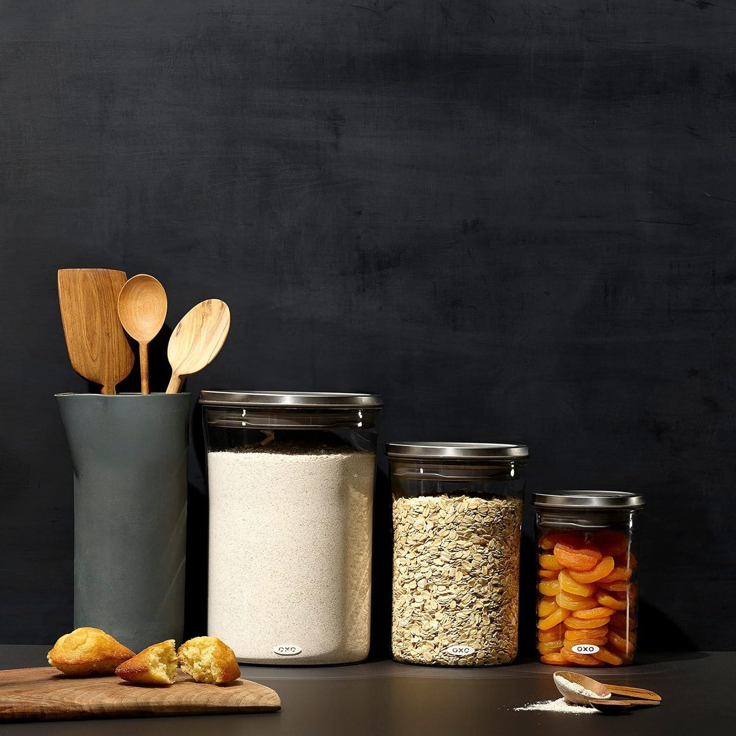 OXO Good Grips Round POP 2.0-3 Piece Graduated Set (1.5, 3.3, 5.2 qt included), White(0.6 Qt/0.6 L 1.5 Qt/1.4 L 3.3 Qt/3.1 L)