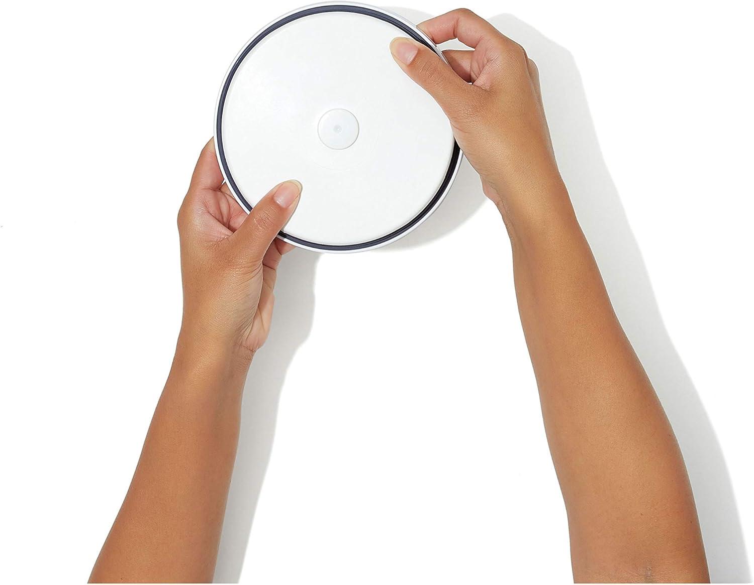 OXO Good Grips Round POP Containers are a smart solution for storing dry foods and keeping ingredients close at hand. Push-button lids create an airtight seal with a single press, so your favorite staples stay fresh. The button pops up for easy, one-handed opening. Each Container is sized to hold household essentials like cereal, flour, sugar, pasta, rice, coffee, nuts, snacks and more. Containers nest with their lids on for convenient storage. POP Containers aren’t just for kitchens: Use them any place you want more organization. For best results, always use the button to open and close. Do not carry POP Containers by the lid. BPA free. Dishwasher safe. Set includes: one 5.2 Qt/4.9 L Container, one 3.3 Qt/3.1 L Container and one 1.5 Qt/1.4 L Container