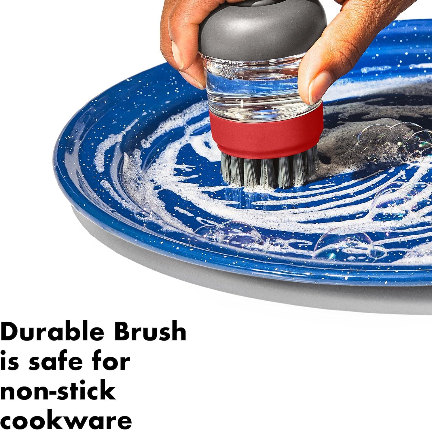 Eliminate your need for bring a sperate soap and sponge on your next camping trip with this compact soap dispensing brush that backs away for leak proof travel​