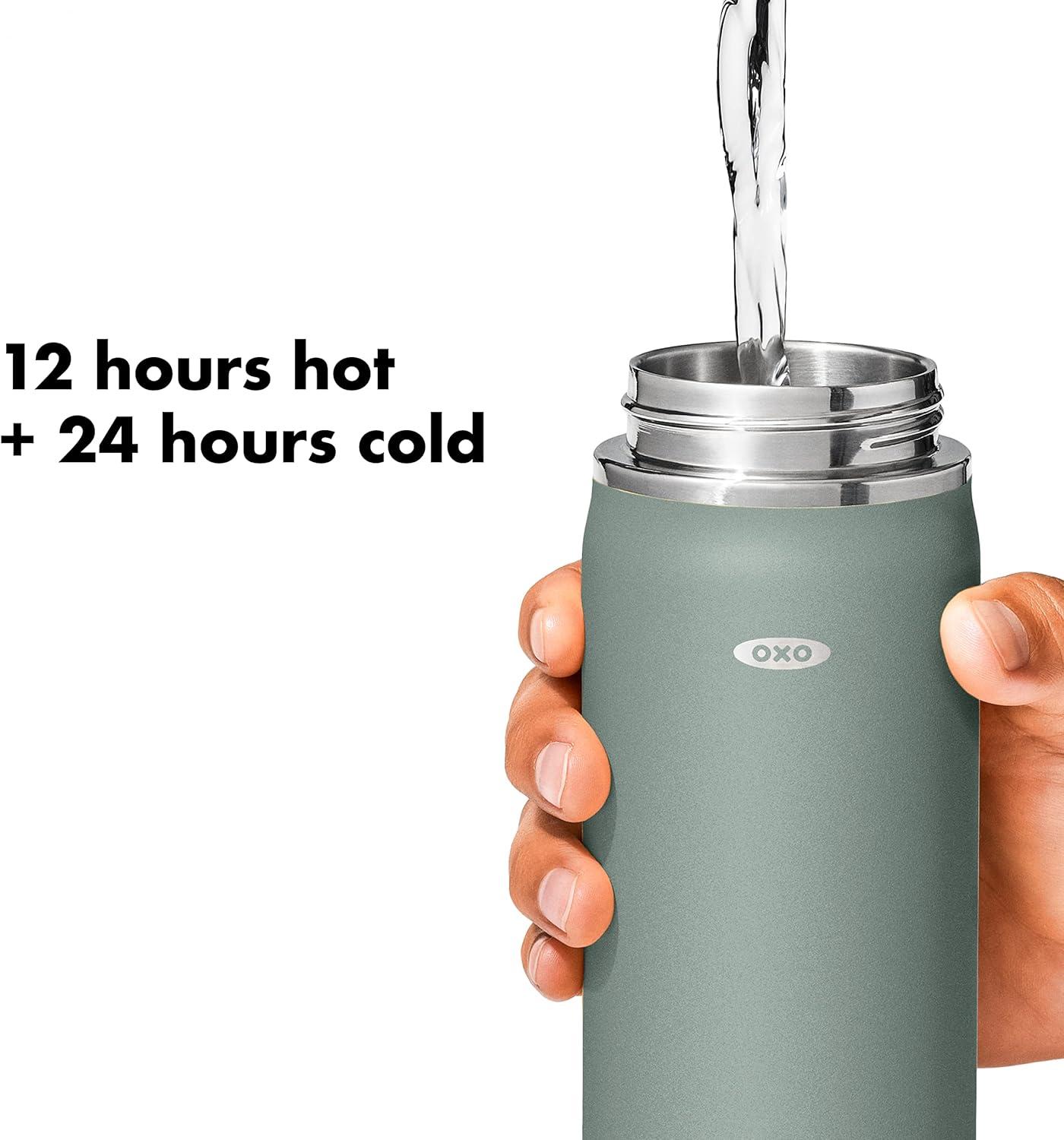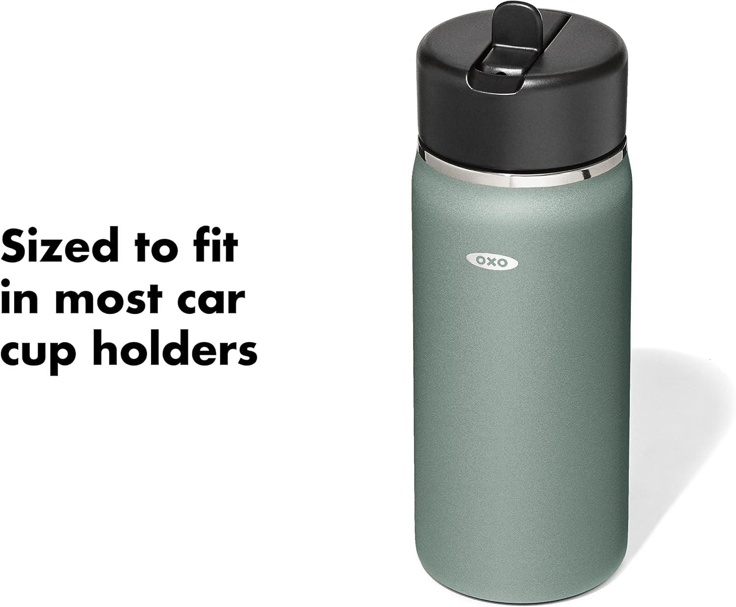 Sip with confidence knowing your drink will still be cold (or hot!) with the OXO Strive 24 oz/710 mL Insulated Wide Mouth Water Bottle with Straw Lid The Insulated Water Bottle is sized to fit most car cup holders and features a non-slip, sweatproof coating for a comfortable grip. The easy-to-clean lid features a removable silicone gasket, and the straw flips open for quick access and snaps closed to help prevent spills. Stainless steel, double-wall vacuum insulation keeps drinks cold for 24 hours or hot for 12 hours. The bottle and lid are dishwasher safe. BPA free.
