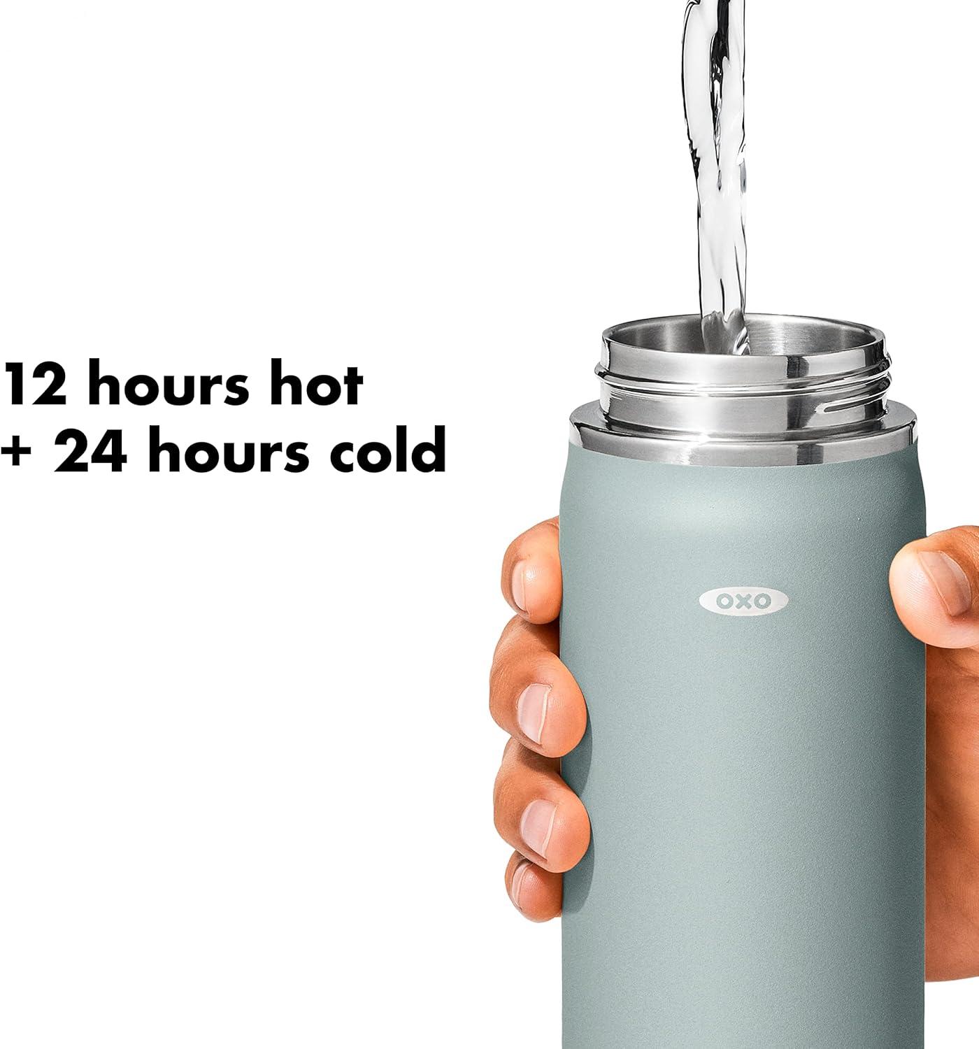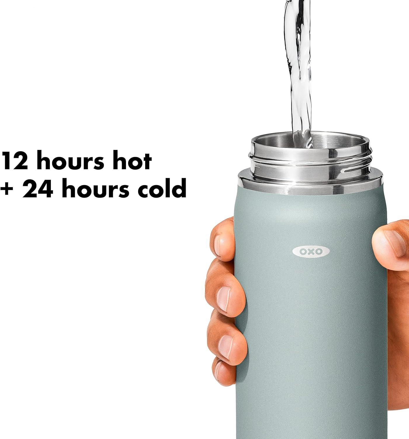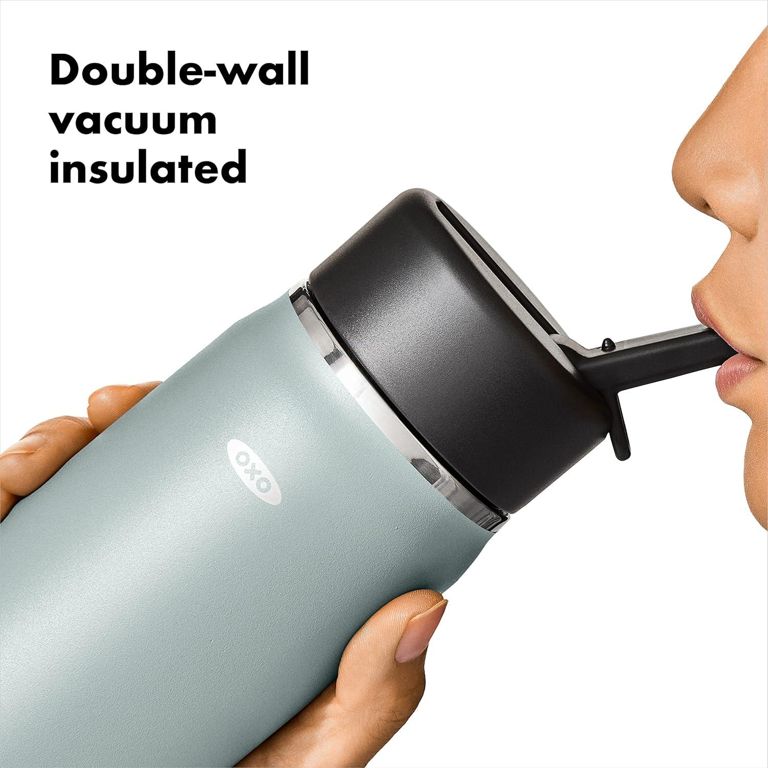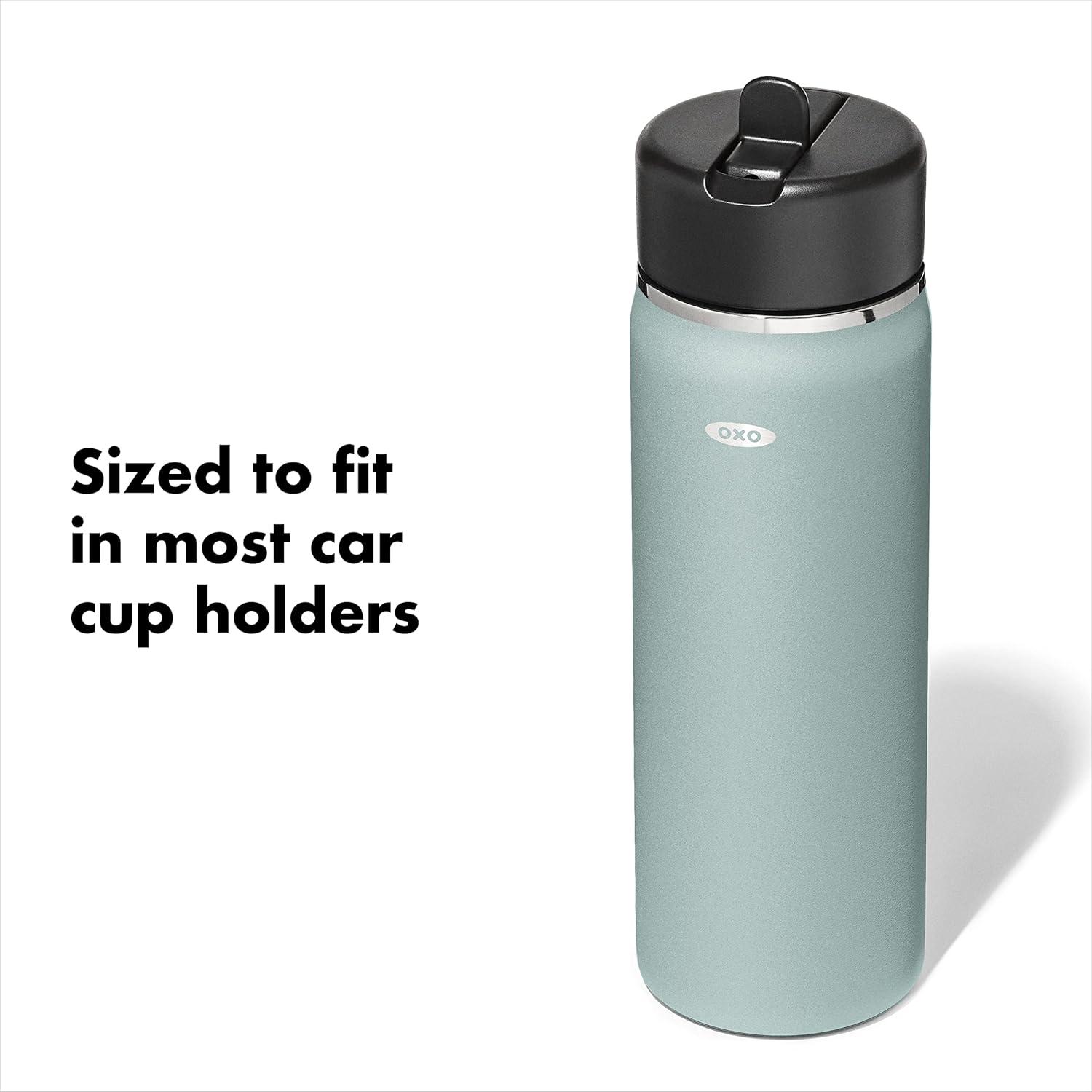 Sip with confidence knowing your drink will still be cold (or hot!) with the OXO Strive 24 oz/710 mL Insulated Wide Mouth Water Bottle with Straw Lid The Insulated Water Bottle is sized to fit most car cup holders and features a non-slip, sweatproof coating for a comfortable grip. The easy-to-clean lid features a removable silicone gasket, and the straw flips open for quick access and snaps closed to help prevent spills. Stainless steel, double-wall vacuum insulation keeps drinks cold for 24 hours or hot for 12 hours. The bottle and lid are dishwasher safe. BPA free.