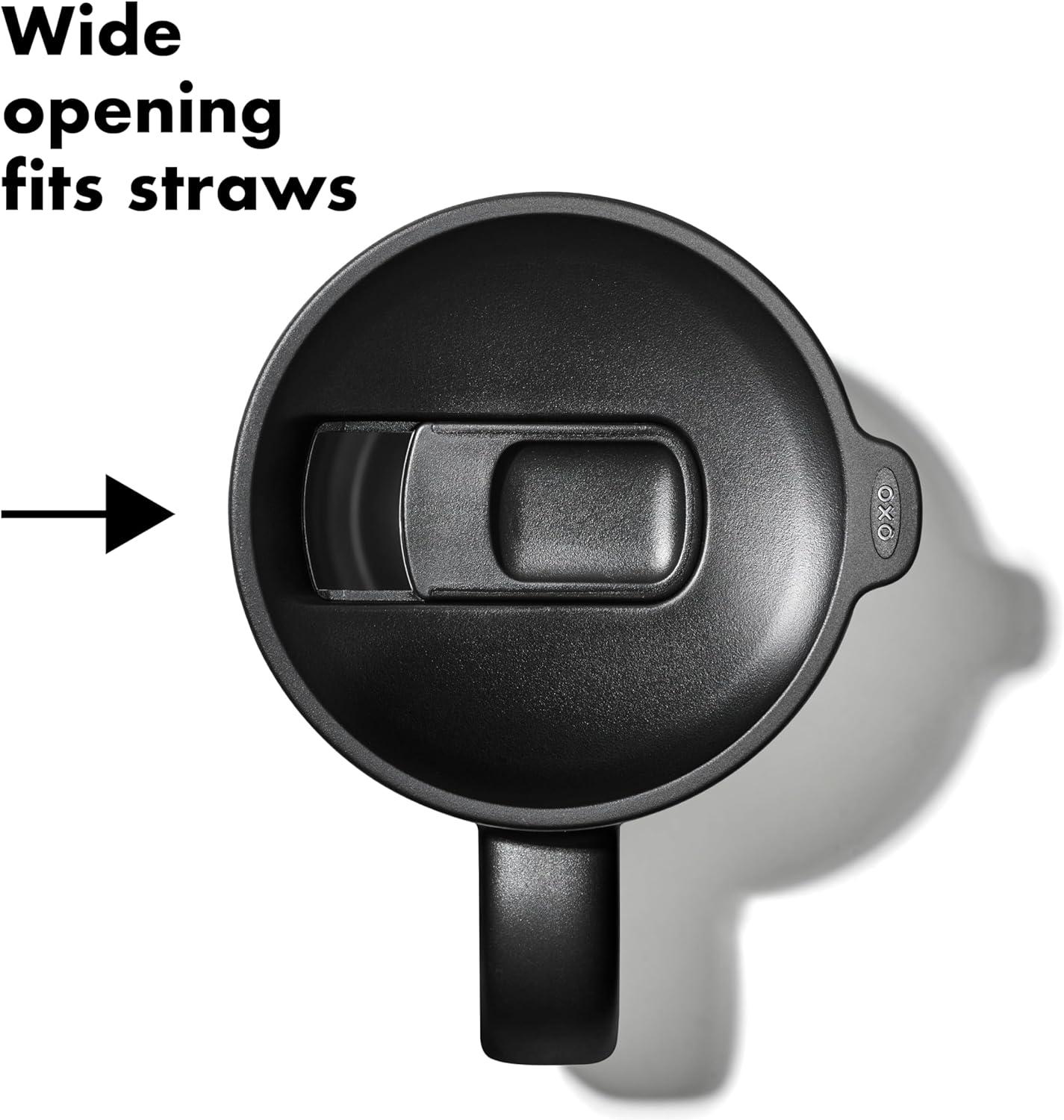 Keep your coffee hot (or cold!) longer with the OXO Strive Insulated Coffee Mug with Handle. It holds 16 ounces and is built to keep your coffee hot (or cold) for hours. It features an easy-close lid design to help minimize messes. The thoughtfully designed soft touch, wide handle is comfortable in the hand for a more confident grip. Th lid’s wide opening is big enough for sipping your morning brew or slurping afternoon soup. Feel like enjoying an iced coffee instead? The lid’s opening easily accommodates a reusable straw too. The Insulated Coffee Mug’s double-wall vacuum insulation is designed to keep your drinks hot or cold for hours keeps your cold drinks cold for 12 hours, and your hot drinks hot for 6 hours. Dishwasher safe, stainless steel, BPA free. By choosing to reuse, you’re doing better for the planet.