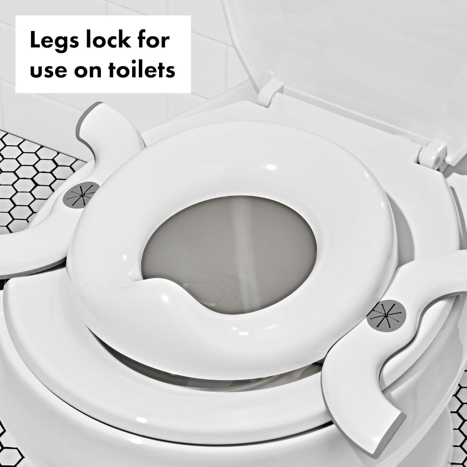 Can be used flat on toilets; legs lock open for use as a standalone potty