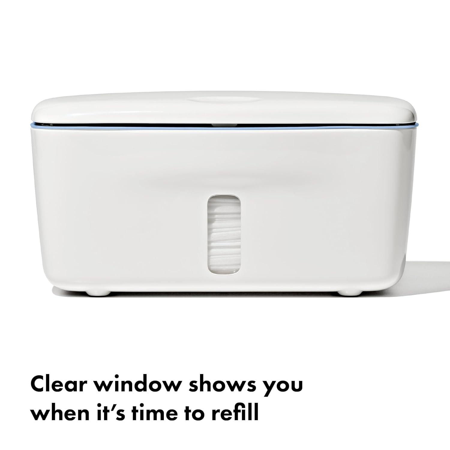 Keep Wipes Moist and Fresh with the OXO Wipe Dispenser: Designed with a silicone gasket in the lid to keep up to 100 wipes moist and fresh in your nursery, in your bathroom, wherever you keep your wet wipes dispenser.