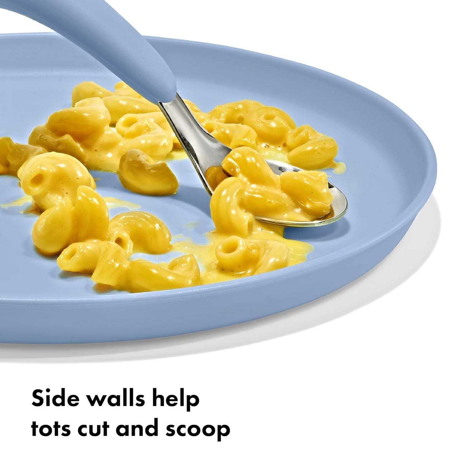 The durable, everyday dishware you need for your baby’s feeding journey is here. The OXO Tot Stackable Plates – 3-pack can be used when baby is first learning to feed with solid foods at six months, and last through the toddler years and beyond. This dishware has been kid tested and parent approved. These stackable plates feature slightly curved side walls with a height that makes it easy for kids to cut and scoop food against them as they learn to feed themselves. The raised edge also helps to prevent spills. The interior of the plate is divided into three sections – one half and two quarters for easy portioning so your tot can get accustomed to seeing different food groups. With a nonslip foot this dishware will stay in place on the table while tot learns to use big kid dishes. Save space and keep the cupboard organized as you incorporate toddler plates and bowls by stacking the dishes snugly together or with big kid dishware. These stackable plates aren’t just for kid’s meals – they’re handy for snacks or meal prep for adults, too! Parents can have peace of mind knowing this dishware is BPA free, phthalate free and PVC free. And it's microwave safe and dishwasher safe.
