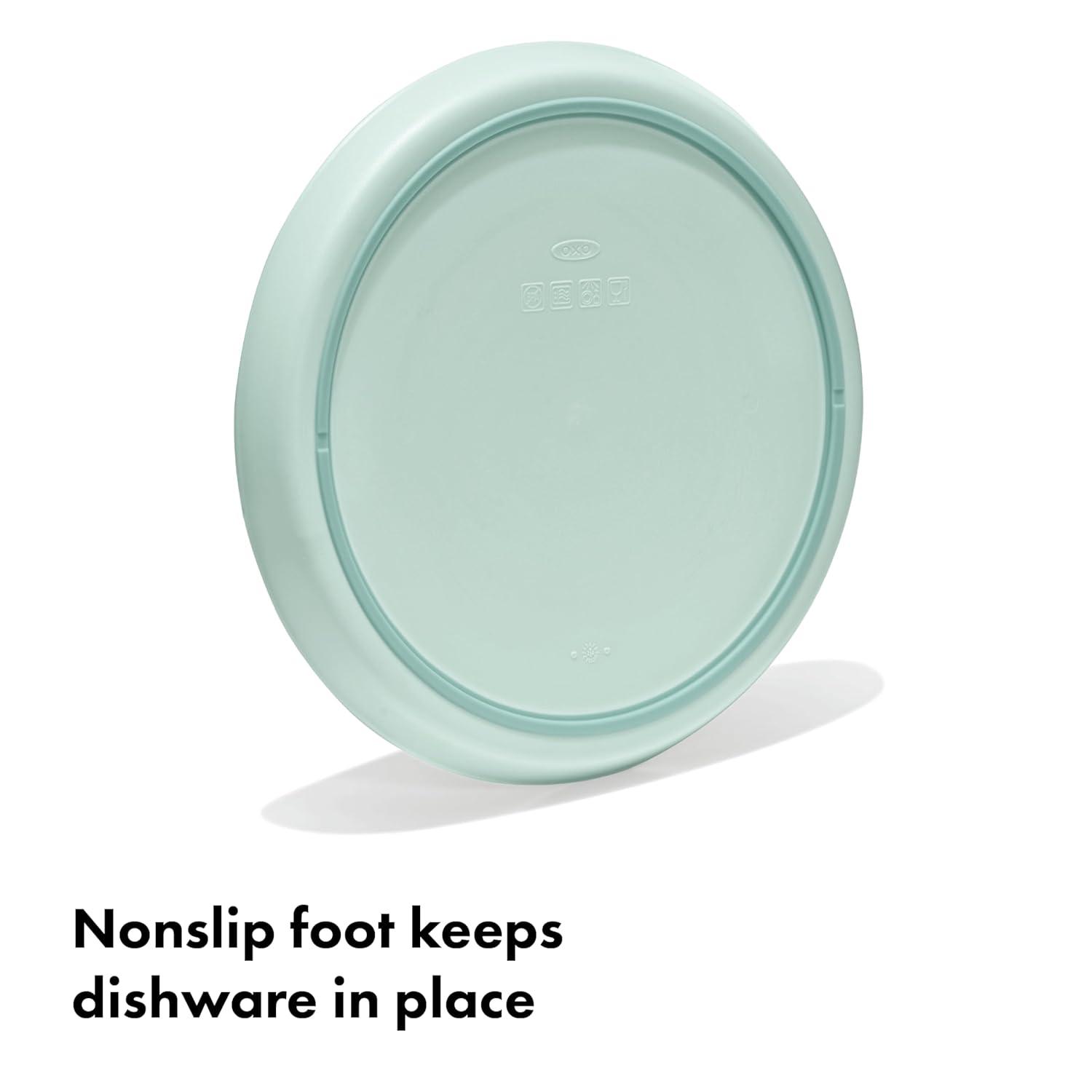 The durable, everyday dishware you need for your baby’s feeding journey is here. The OXO Tot Stackable Plates – 3-pack can be used when baby is first learning to feed with solid foods at six months, and last through the toddler years and beyond. This dishware has been kid tested and parent approved. These stackable plates feature slightly curved side walls with a height that makes it easy for kids to cut and scoop food against them as they learn to feed themselves. The raised edge also helps to prevent spills. The interior of the plate is divided into three sections – one half and two quarters for easy portioning so your tot can get accustomed to seeing different food groups. With a nonslip foot this dishware will stay in place on the table while tot learns to use big kid dishes. Save space and keep the cupboard organized as you incorporate toddler plates and bowls by stacking the dishes snugly together or with big kid dishware. These stackable plates aren’t just for kid’s meals – they’re handy for snacks or meal prep for adults, too! Parents can have peace of mind knowing this dishware is BPA free, phthalate free and PVC free. And it's microwave safe and dishwasher safe.
